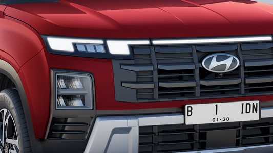 New CRETA hadir dengan desain eksterior yang memadukan kesan berani dan modern dengan Black Chrome Parametric Radiator Grille, LED MFR, Daytime Running Light (DRL) memperkuat kesan dinamis dan memberikan penampilan yang mencolok di jalan.